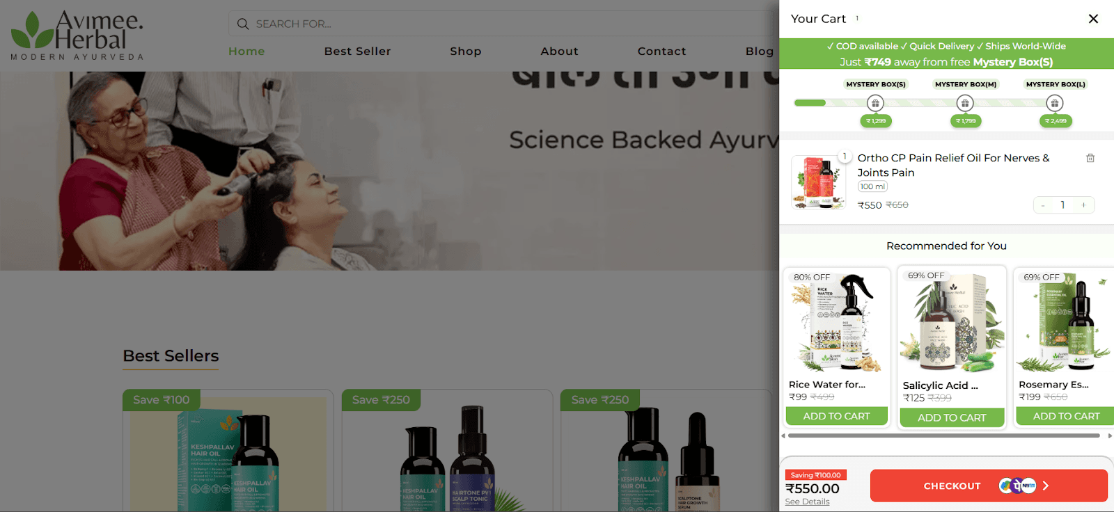This allowed Avimee Herbals to capture additional revenue at the highest-intent moment before checkout.