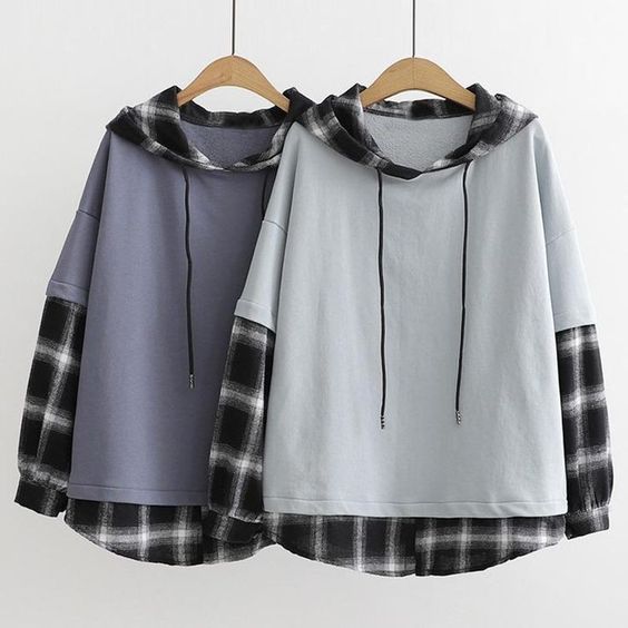 Plaid Sleeve Kangaroo Pocket Drawstring Hoodie